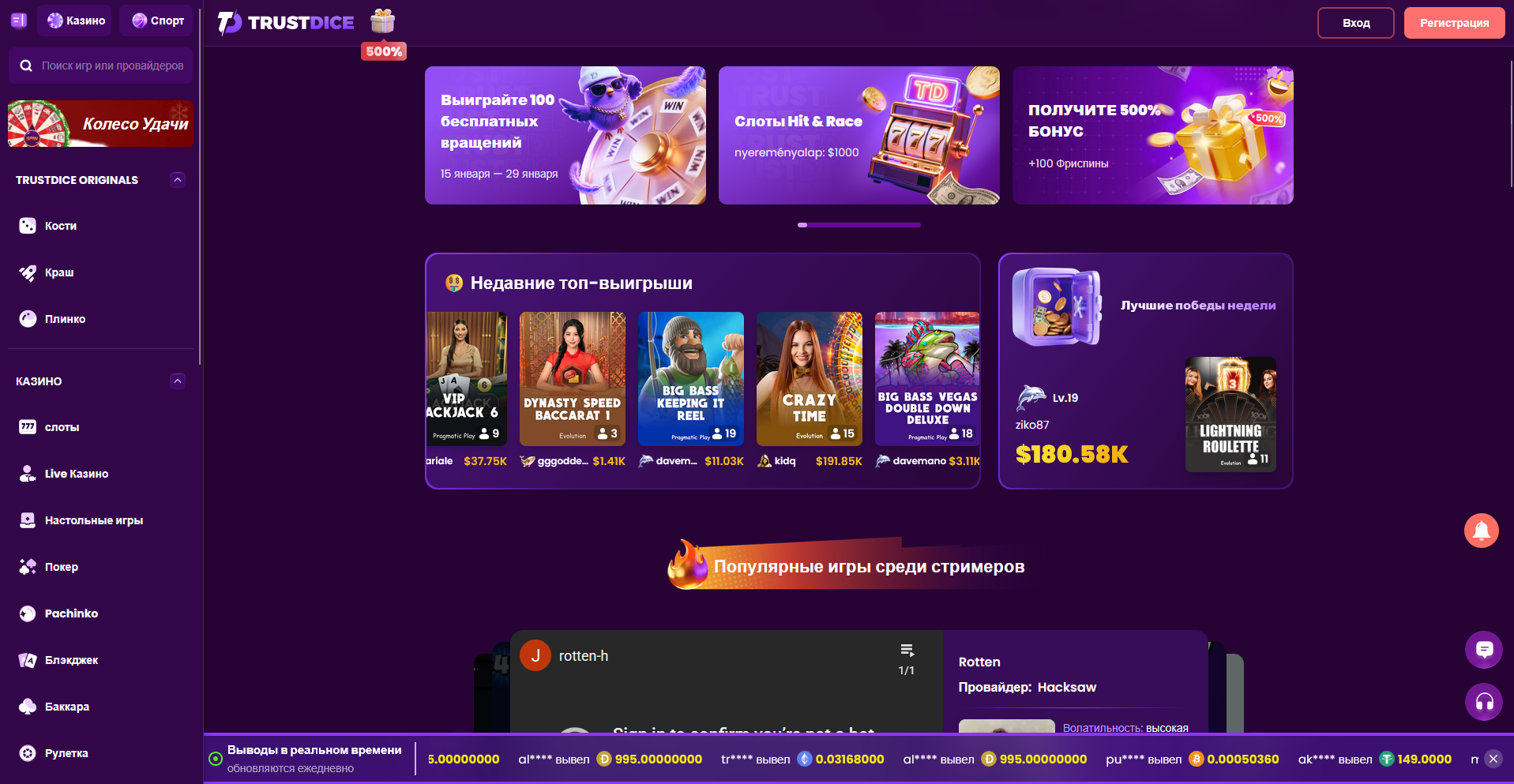 Платформа Trustdice запущена в 2018 году и работает под лицензией Curacao Gaming Authority (номер лицензии OGL/2024/664/0280, выданная 16 июля 2024 года). На сайте доступны более 6000 игр: слоты, настольные игры, live-казино и собственные провably fair игры (Dice, Crash, Plinko). Кроме того, платформа предлагает полноценный sportsbook с линией по спорту и киберспорту. Новичкам важно разобраться с навигацией, регистрацией и способами пополнения счета, чтобы начать играть без ошибок.