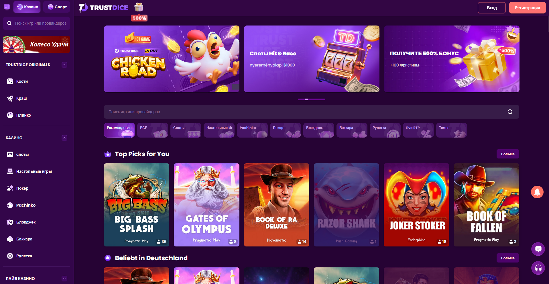 На платформе Trustdice казино доступно более 2000 слотов, 50+ live-столов и 10 режимов Originals. Каталог постоянно пополняется новыми релизами провайдеров. Точное количество игр варьируется в зависимости от региона и условий лицензии.